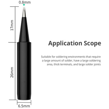 • Dimensión: incluye puntas redondas, puntas planas, puntas en ángulo en U y puntas tipo cuchillo, que pueden satisfacer sus necesidades de soldadura de componentes de diferentes formas y en diferentes rangos de espacio de trabajo.