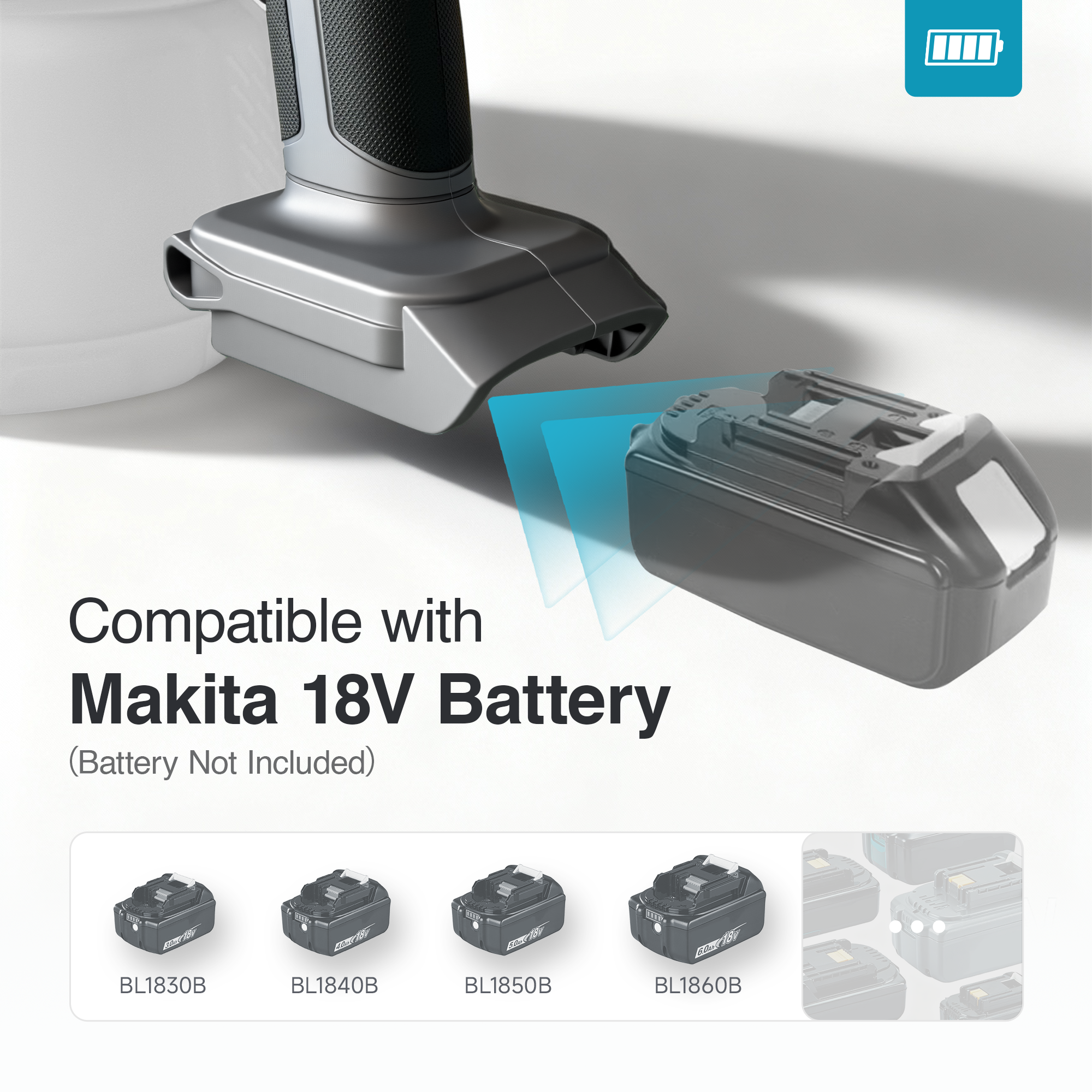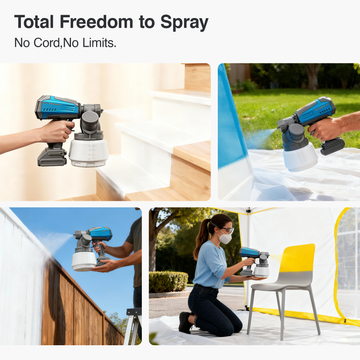 Disfrute de total libertad de movimiento con esta pistola de pintura eléctrica inalámbrica. Alimentada por baterías Mak de 18 V compatibles (incluidas BL1830B, BL1840B, BL1850B, BL1860B y otras; batería no incluida), es ideal para una amplia gama de proyectos de interior y exterior, como pintar casas, paredes, vallas, muebles, armarios, puertas, garajes y cualquier lugar donde no haya enchufes al alcance.